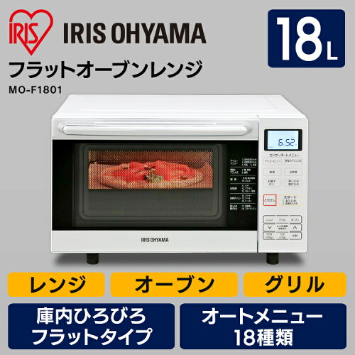 オーブンレンジ フラットテーブル 18L アイリスオーヤマ MO-F1801 18L ヘルツフリー オートメニュー 多機能 お弁当温め 電子レンジ レンジ グリル オーブントースター 食パン 一人暮らし おしゃれ ホワイト 白