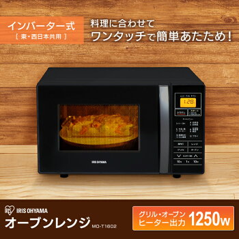 オーブンレンジ MO-T1602あす楽対応 送料無料 オーブン 家電 ターンテーブル 台所 キッチン 解凍 オートメニュー ヘルツフリー あたため 簡単 共用 調理家電 タイマー トースト 簡単操作 アイリスオーヤマ ブラック