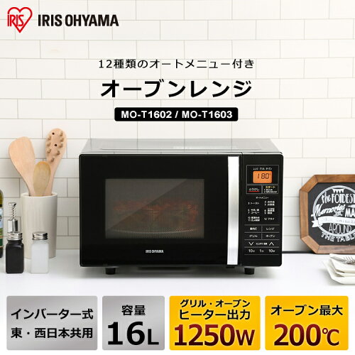 [10%OFFクーポン対象★8日12:59迄]オーブンレンジ アイリスオーヤマ ブラック 電子レンジ インバーター式ターンテーブル オートメニュー ヘルツフリー タイマー トースト フライ オーブン レンジ おすすめ 人気 簡単操作 MO-T1602 MO-T1603[shin][cpir][jku]